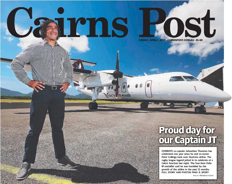 Nrl Star Johnathan Thurston Announces Investment In Skytrans In Partnership With West Wing Aviation Owner Collings Aviation The Cairns Post